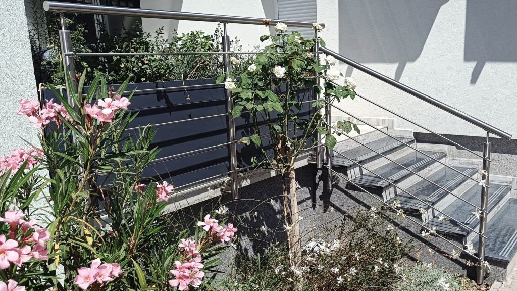 A rozsdamentes acél korlátok a legmodernebb és legpraktikusabb megoldások közé tartoznak. Nem igényelnek festést, nem rozsdásodnak, és nagyon hosszú élettartamúak. Fényes, letisztult megjelenésük miatt a modern építészetben rendkívül kedveltek, különösen erkélyeken és kültéri lépcsők mellett.
